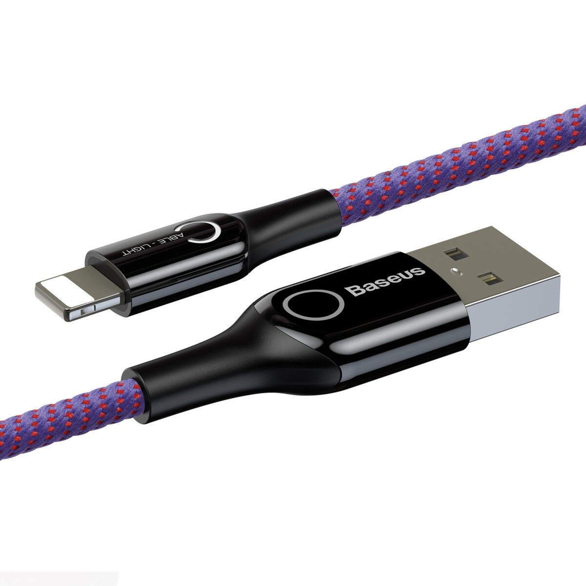 Кабель 1м USB - Lightning, Baseus C-Shaped Light Intelligent Power-Off Cable, 2.4А для apple, iphone, фиолетовый