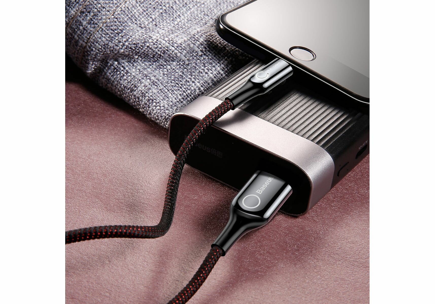 Кабель USB BASEUS C-shaped Light, USB - Lightning, 2.4А, 1 м, красный, интеллектуальный