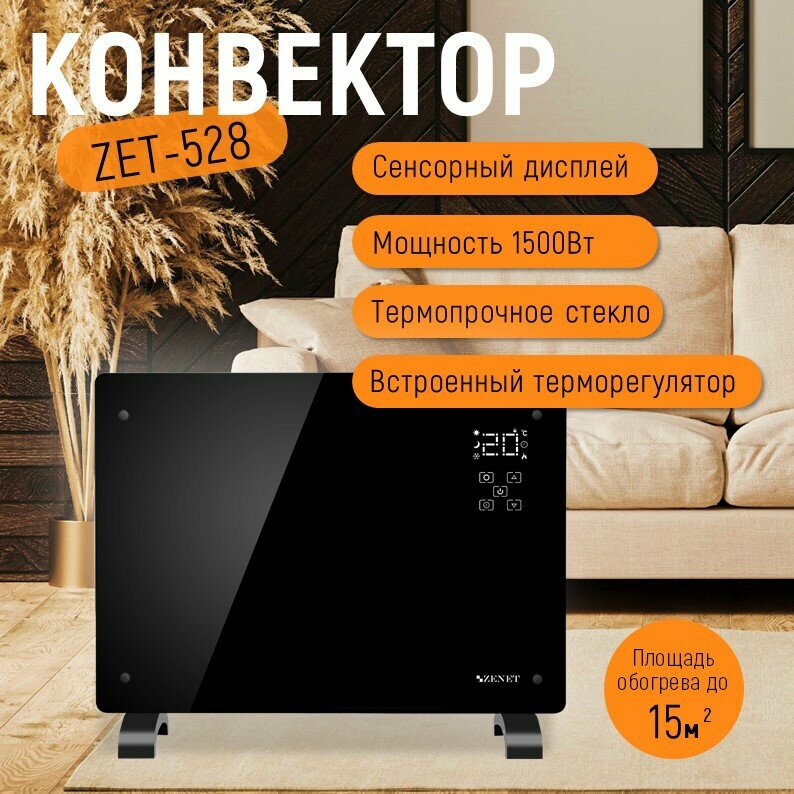 Конвектор ZENET ZET-528, 1500Вт, с терморегулятором, черный