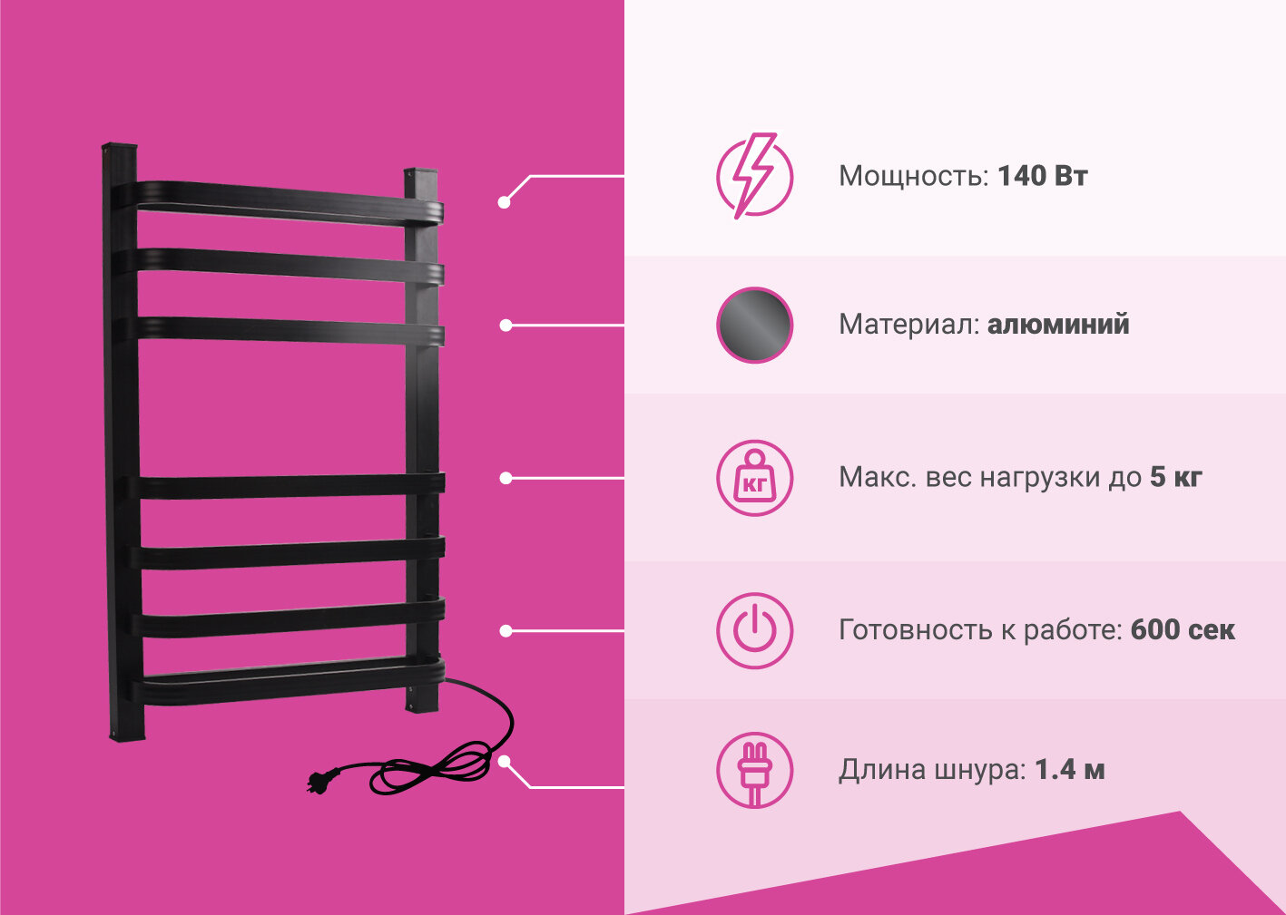 Полотенцесушитель Электрический Тругор Пэк сп 5 П 60х50 черный ВГП