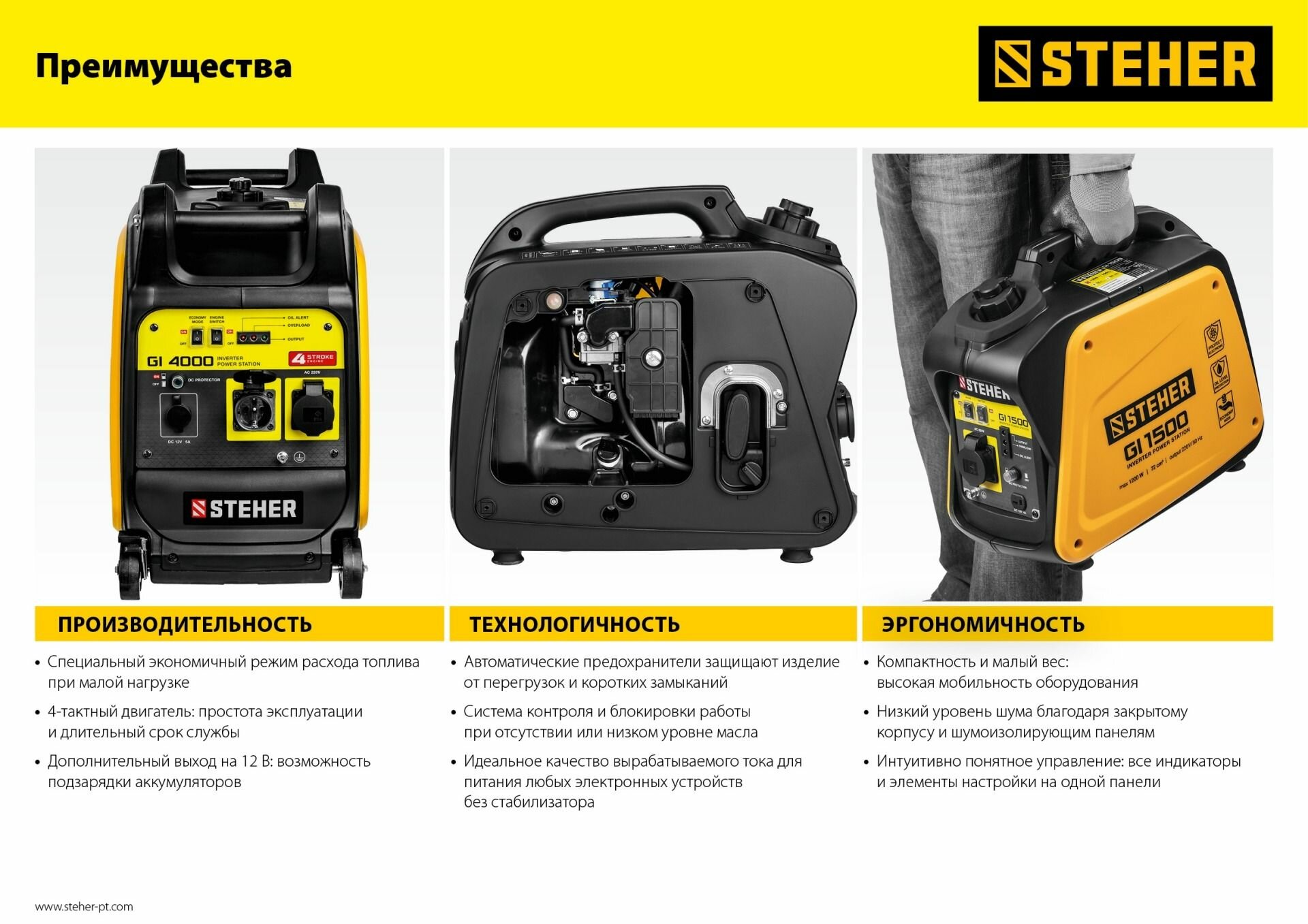 Генератор бензиновый инверторный STEHER GI-1500 интересное: