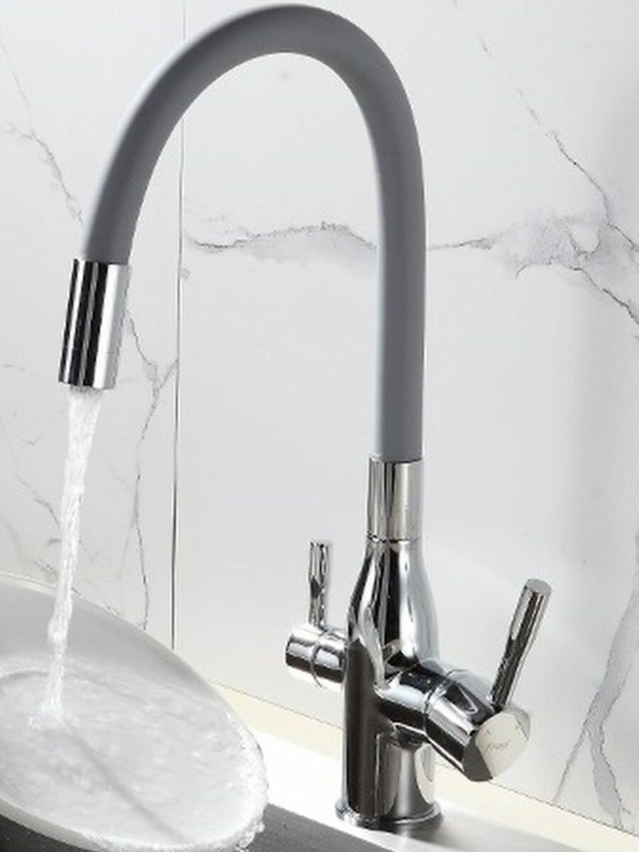 Смеситель для кухни под фильтр с гибким, поворотным изливом Frap F4396 хром,серый
