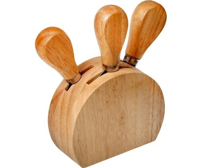 Набор для резки сыра с подставкой 3 пр.8,5x8x4см, гевея, нерж. сталь, круглая
