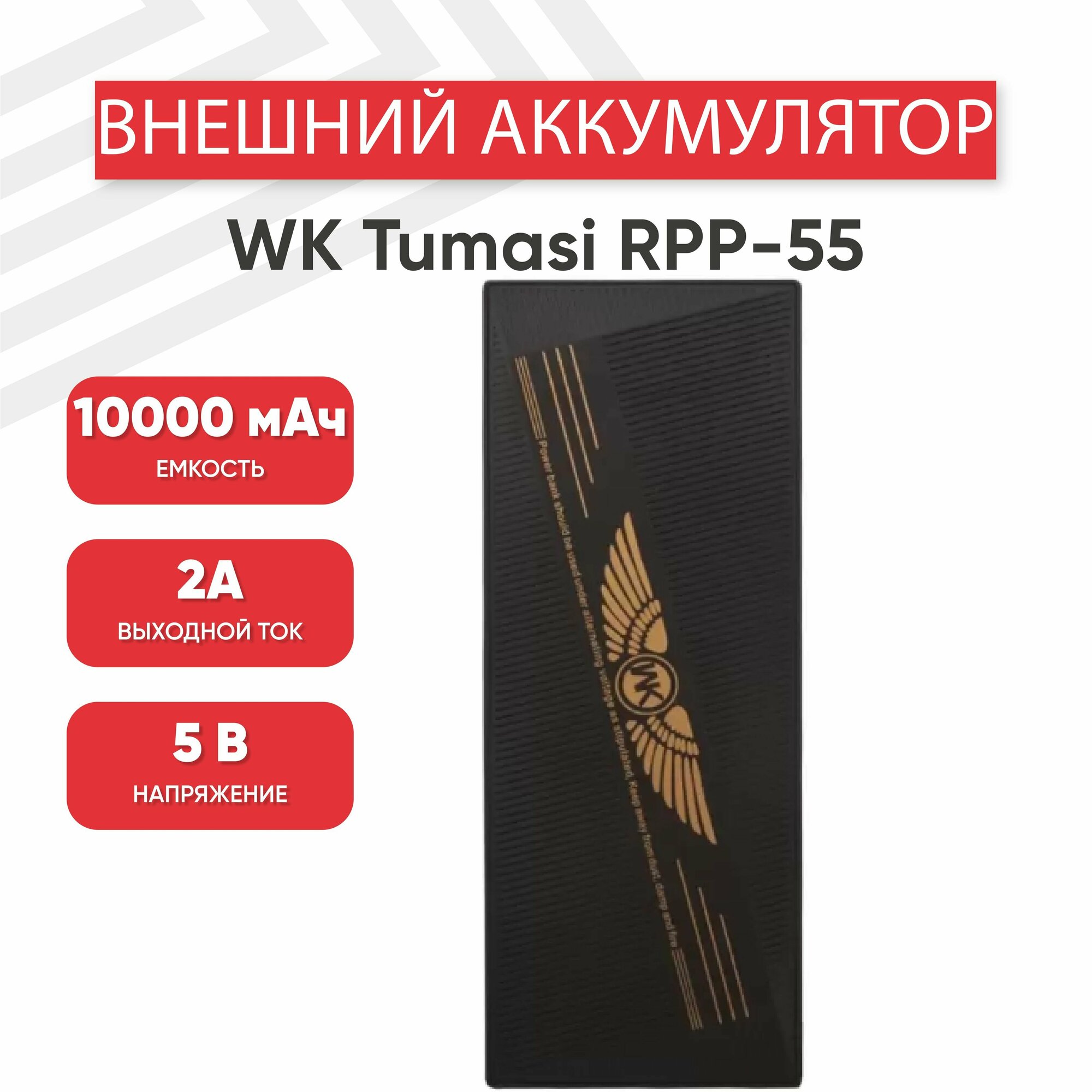 Внешний аккумулятор (Powerbank, АКБ) WK Tumasi RPP-55, 10000мАч, 2xUSB, 2А, Li-Pol, черный интересное: