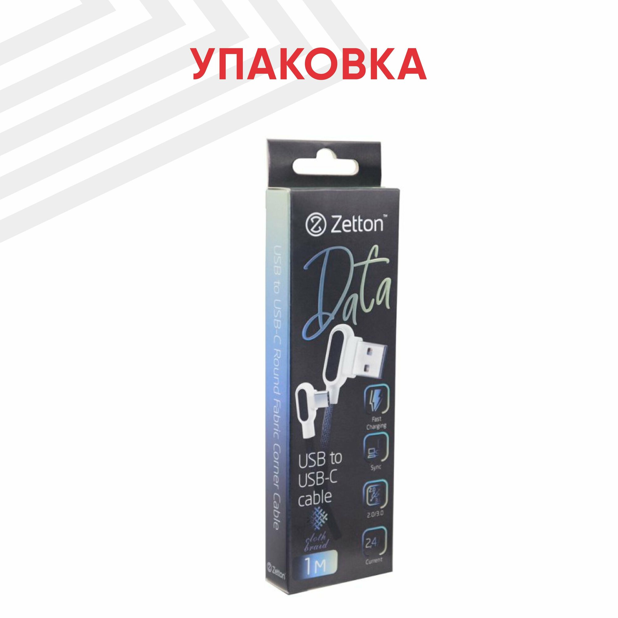 Кабель ZETTON SyncCharge Round Fabric Corner Cable USB to USB-C, черный