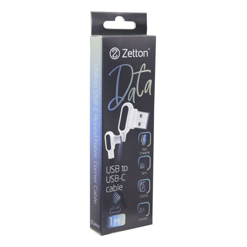 Кабель ZETTON SyncCharge Round Fabric Corner USB to USB-C, белый