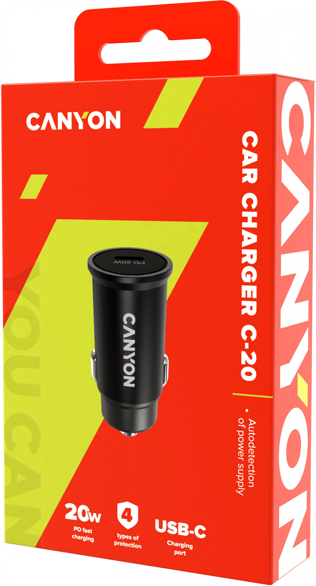 Автомобильное зарядное устройство Canyon C-20 (PD 20W, USB-C), черный
