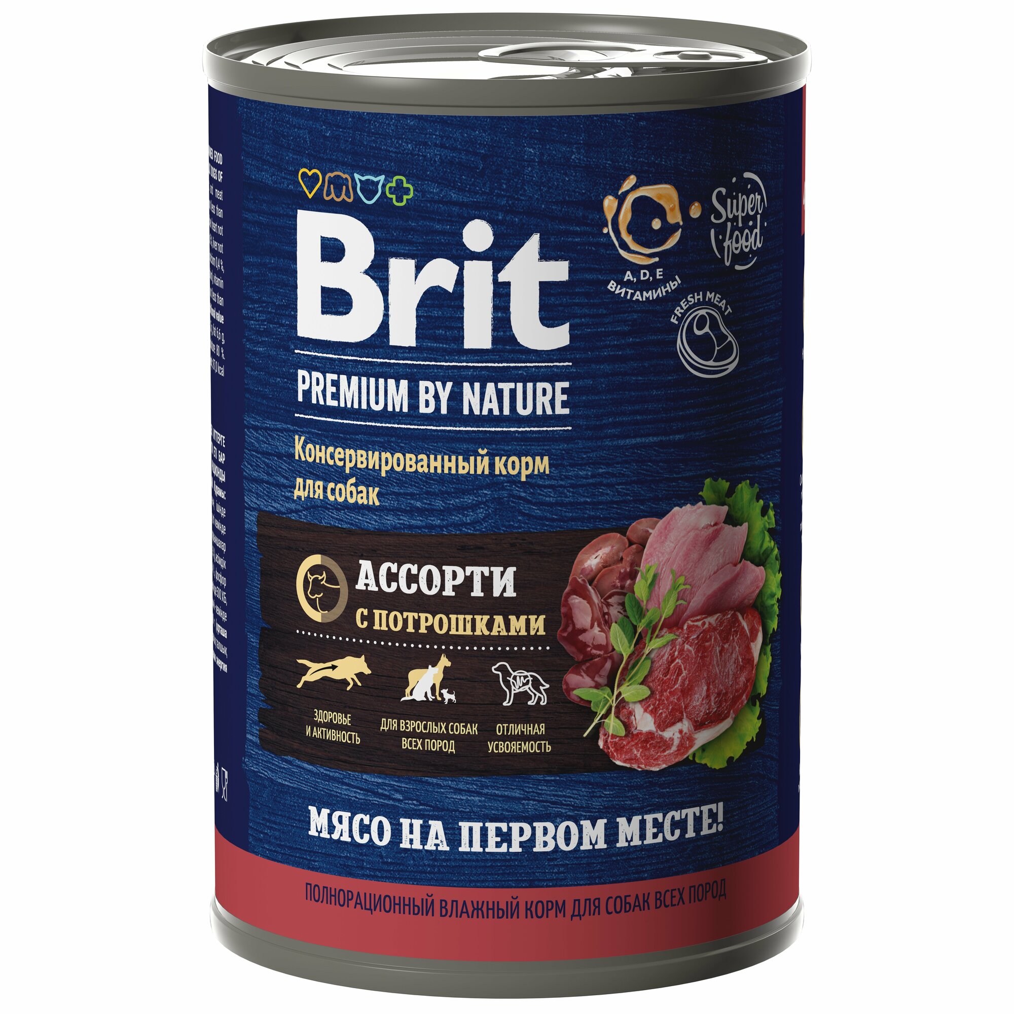 BRIT Premium by Nature Dog Adult Корм влаж.мясное ассорти с потрошками д/собак конс.410г