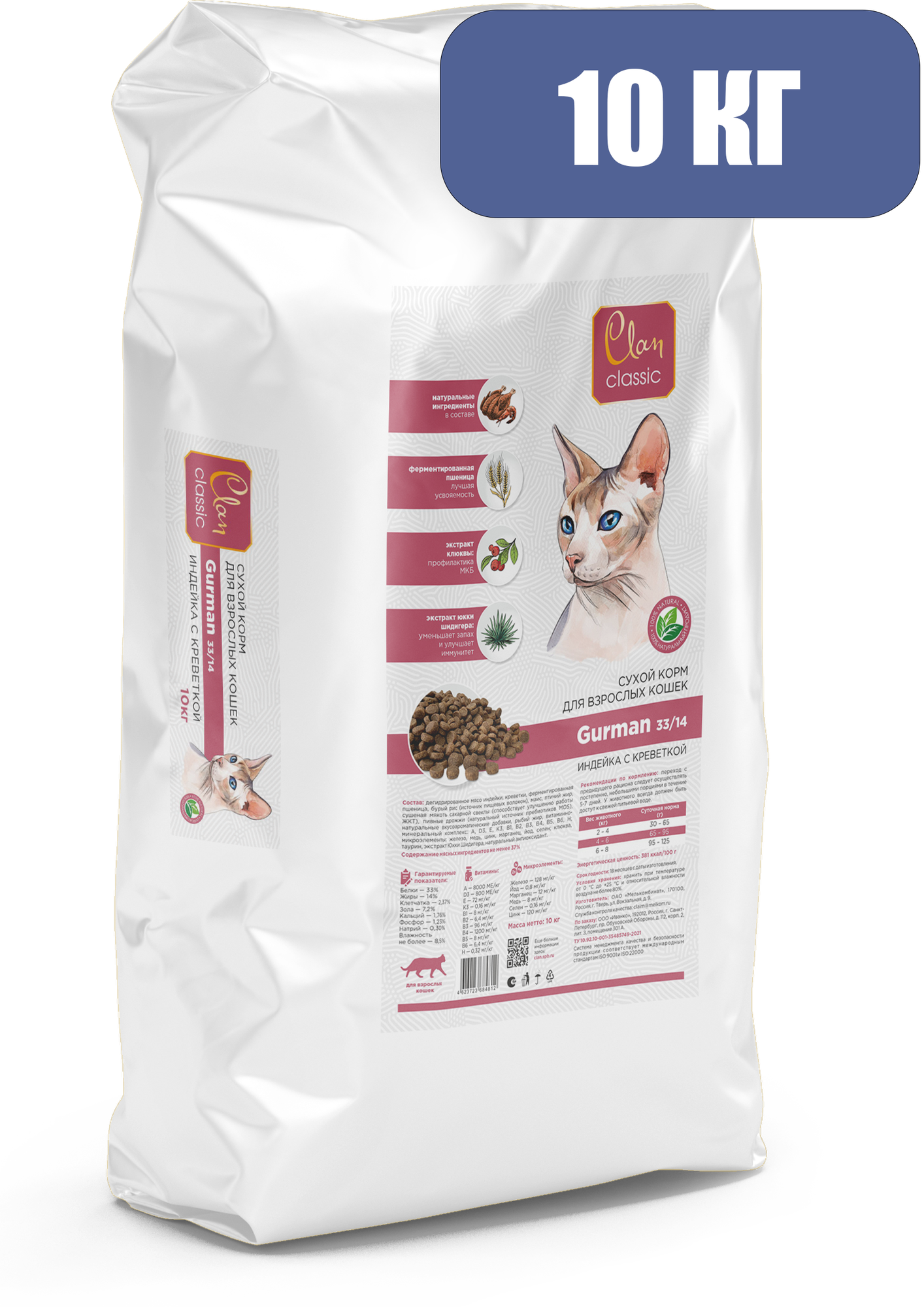 Сухой корм CLAN CLASSIC Gurman-33/14 индейка/креветки для кошек привередливых 10кг
