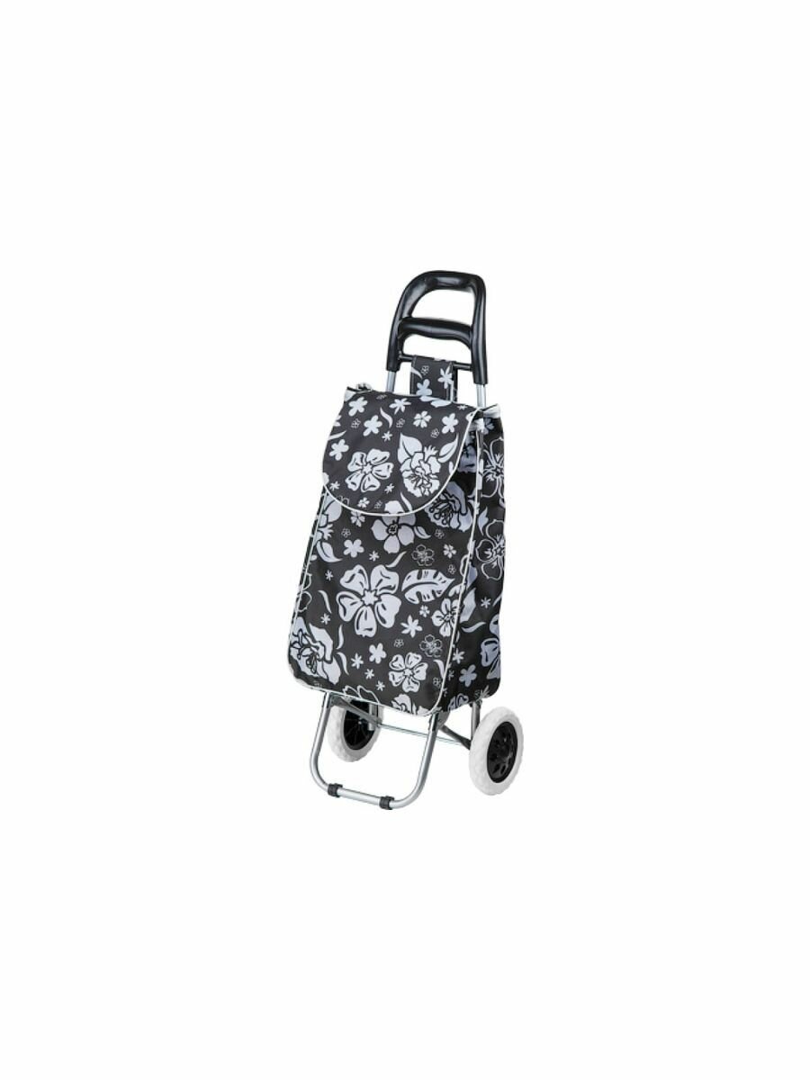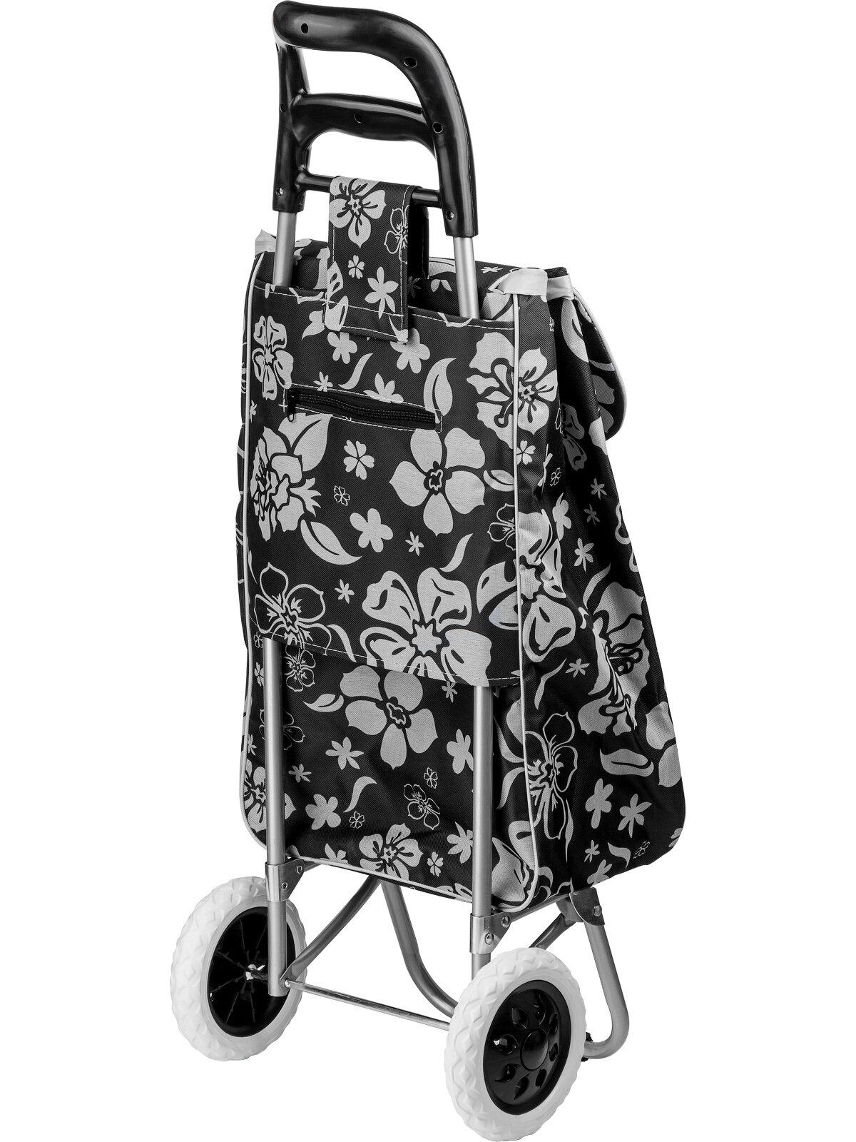 Купить Сумка-тележка хозяйственная на колесах 30 кг, черная, цветы, PERFECTO LINEA (42-307014)