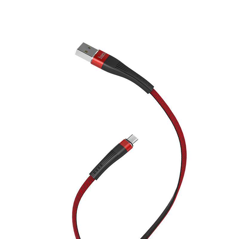 Кабель USB - микро USB HOCO U39 Slender, 1.2м, плоский, 2.4A, силикон, цвет чёрный, красная вставка