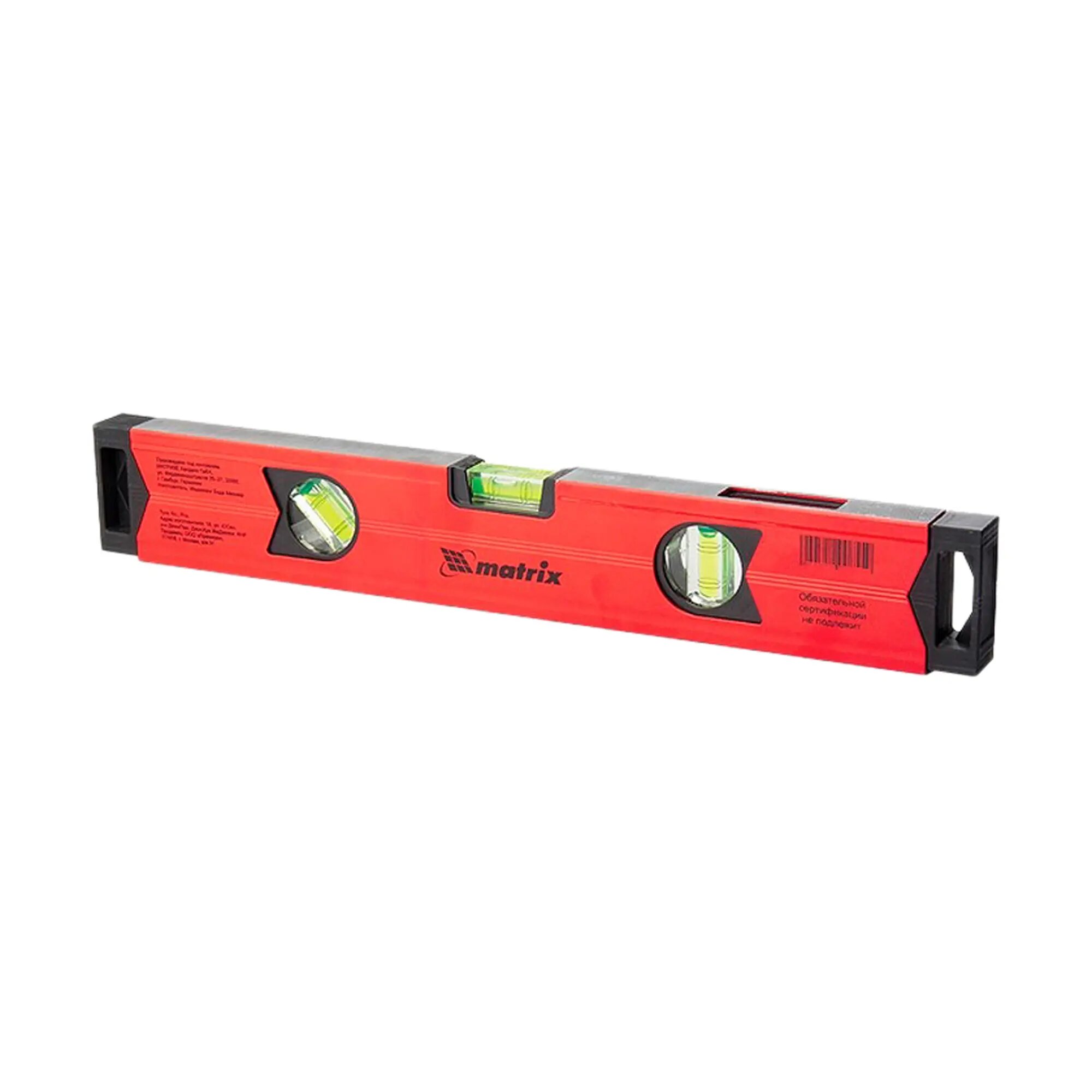 Уровень алюминиевый усиленный Matrix магнитный, 800 мм, 3 глазка (34708)