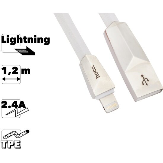 Купить Кабель HOCO USB X4 Zinc Alloy Rhombus Lightning 8-pin, 1.2м, 2.4A, TPE (белый)