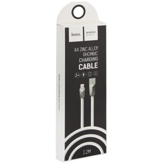Кабель HOCO X4 Zinc Alloy Rhombus Lightning 8-pin, 1.2м, 2.4A, белый