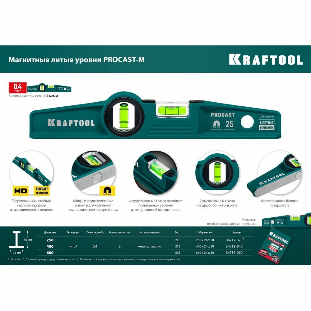 KRAFTOOL Procast-M Магнитный литой уровень 400 мм 34718-040