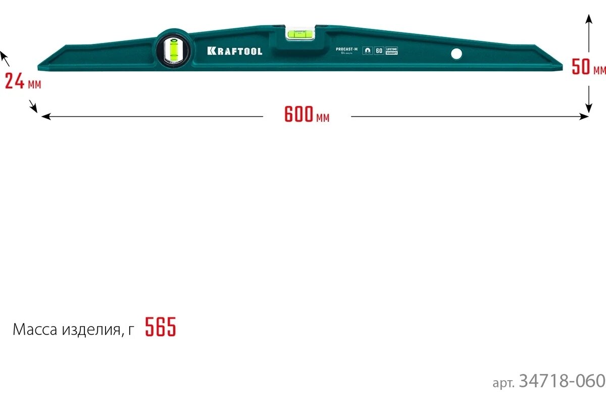 KRAFTOOL PROCAST-M 600 мм, Магнитный литой уровень (34718-060)