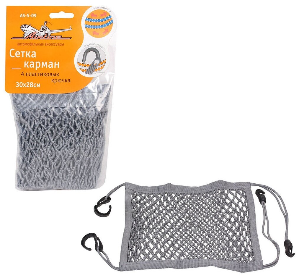 Сетка карман между передними сиденьями 30*28 см 4 пластиковых крючка AS-S-09 airline 1шт интересное: