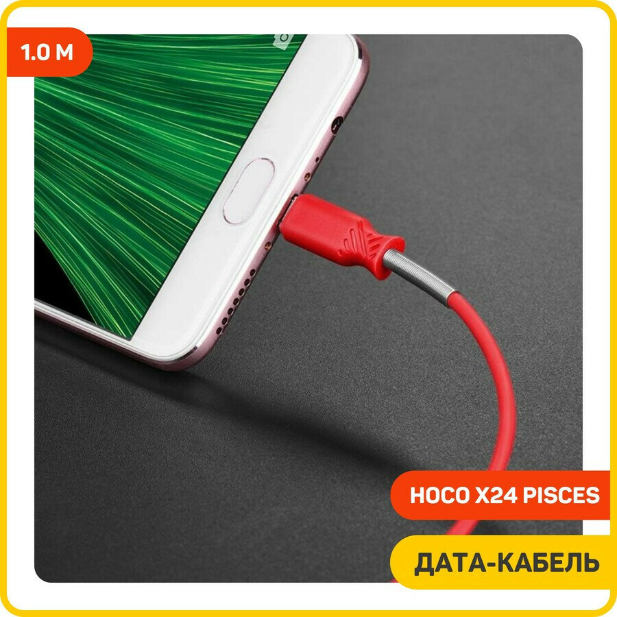 Дата-кабель Hoco X24 Pisces USB-MicroUSB (с пружиной) 1 м, красный