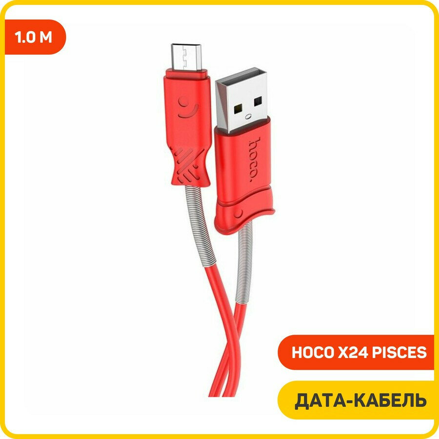 Дата-кабель Hoco X24 Pisces USB-MicroUSB (с пружиной), 1 м, красный