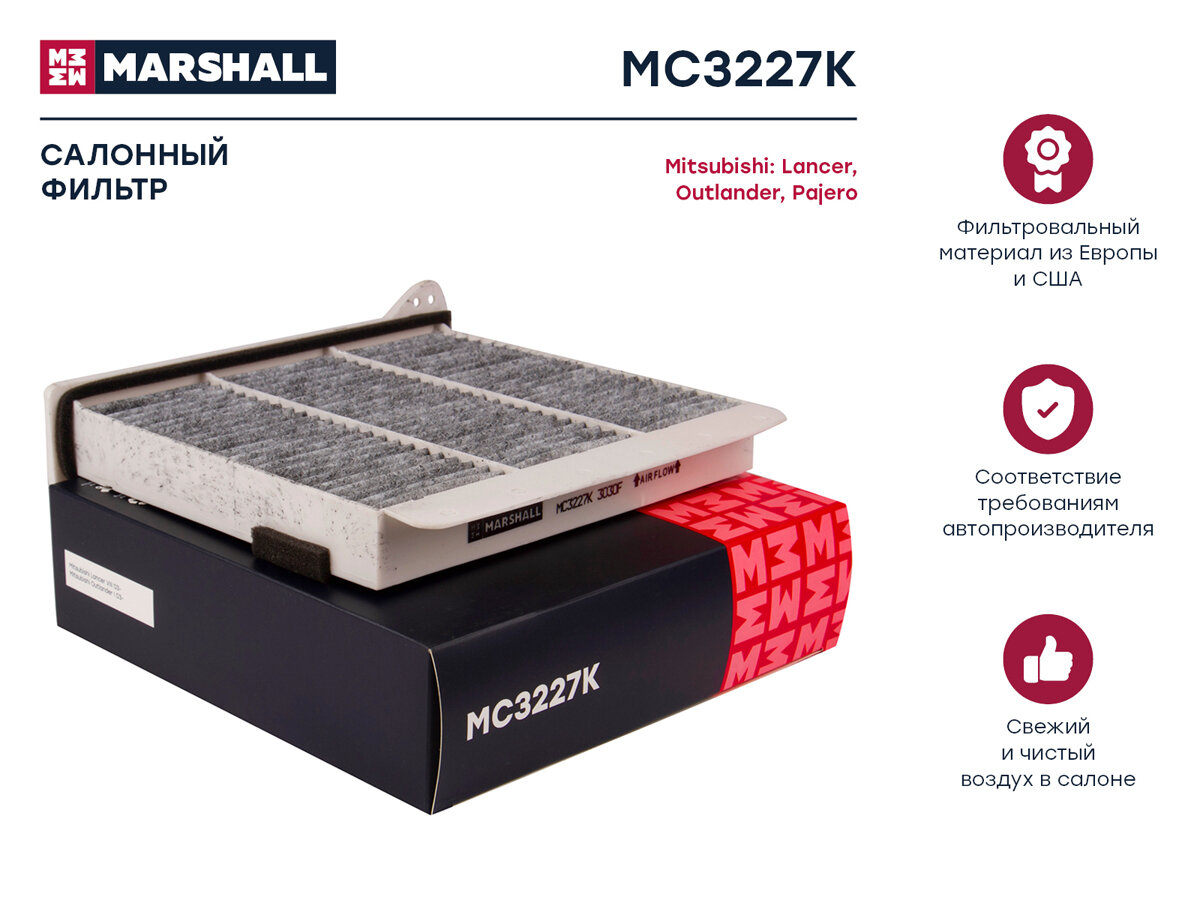 Фильтр салонный угольный MARSHALL MC3227K для Mitsubishi Lancer VIII, Mitsubishi Outlander I, Mitsubishi Pajero II // кросс-номер MANN CUK 2231