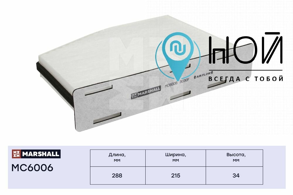 Фильтр Салонный Audi A3 (8P) 03-, Audi Q3 (8U) 11-, Skoda Octavi Marshall Mc6006 MARSHALL арт. MC6006