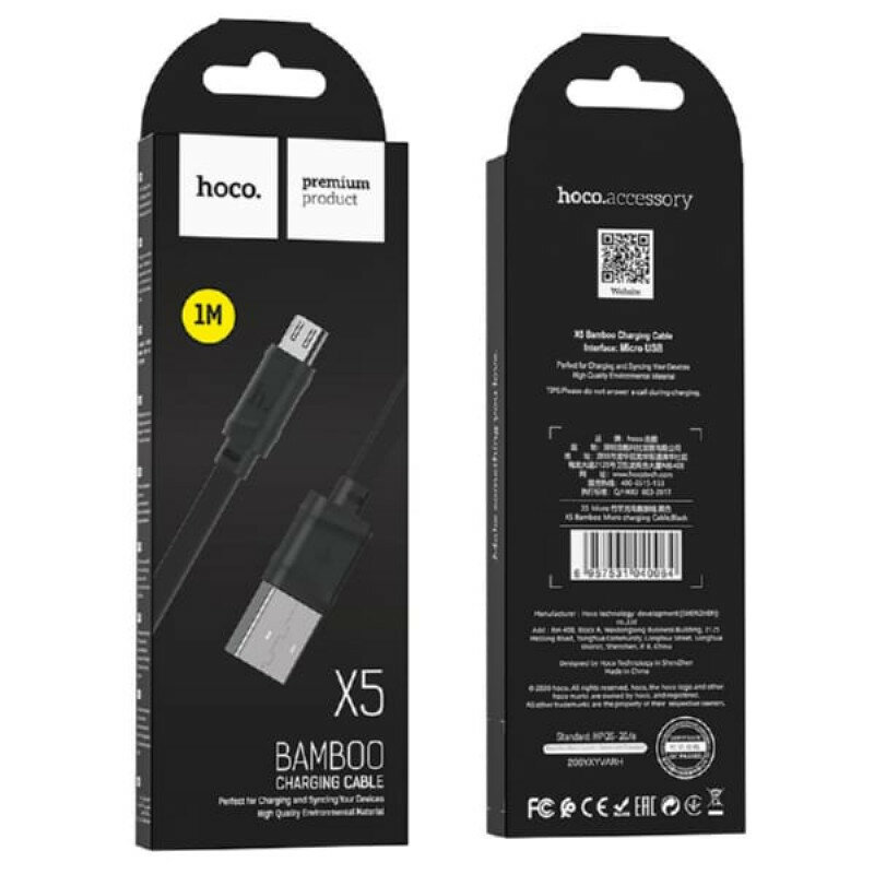 USB кабель HOCO X5 Bamboo Micro Charging Cable L=1M черный