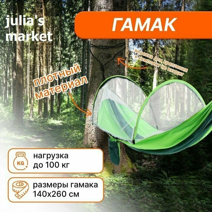 VELTON PARK Гамак туристический с москитной сеткой (260х140 см, нейлон, до 150 кг, сумка, зелёный) интересное: