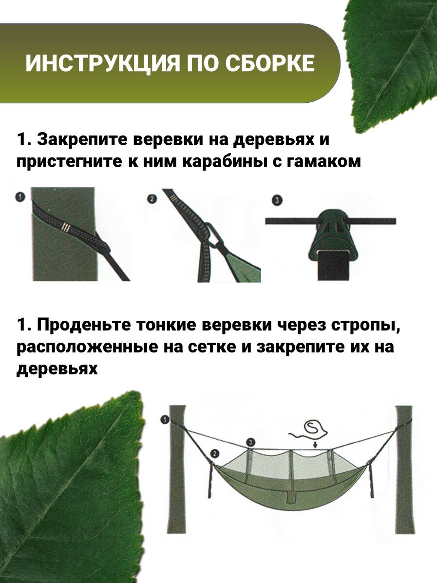 | Дополнительная информация | Внутри гамака имеется дополнительный карман, москитная сетка соединена с гамаком молнией с 2 бегунками. |