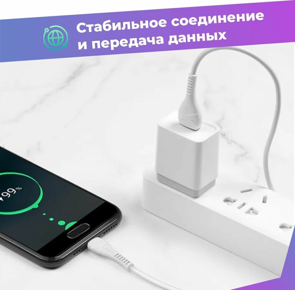 Кабель USB2.0 Cm-Am Hoco X13 2.4А White, белый - 1 метр