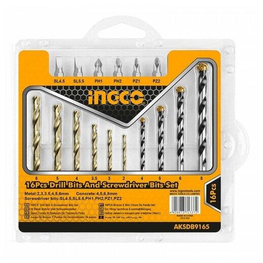 Набор сверл и бит 16шт, INGCO AKSDB9165
