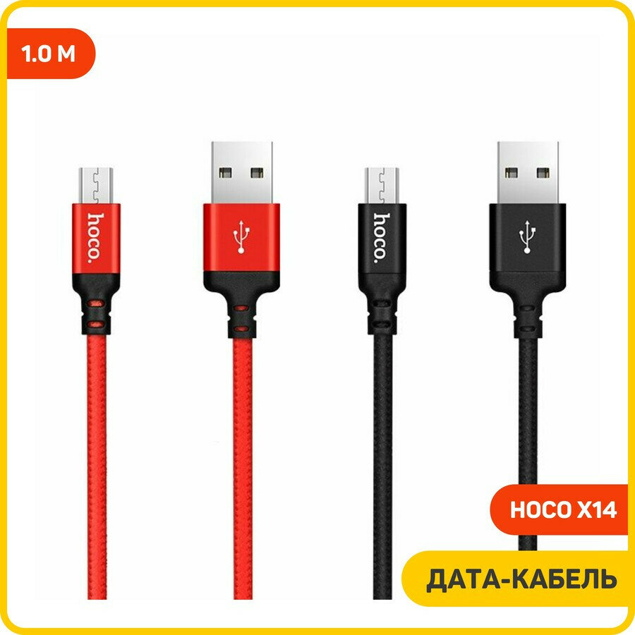 Кабель HOCO X14 USB (m)-microUSB (m) 1 м, красный/черный