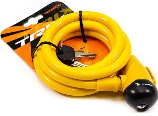 Замок велосипедный Trix трос с ключами 12х1500 мм желтый интересное: