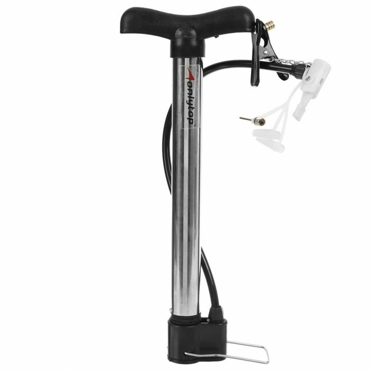 | Плюсы: | Наличие манометра , насадки , складные упоры для ног |