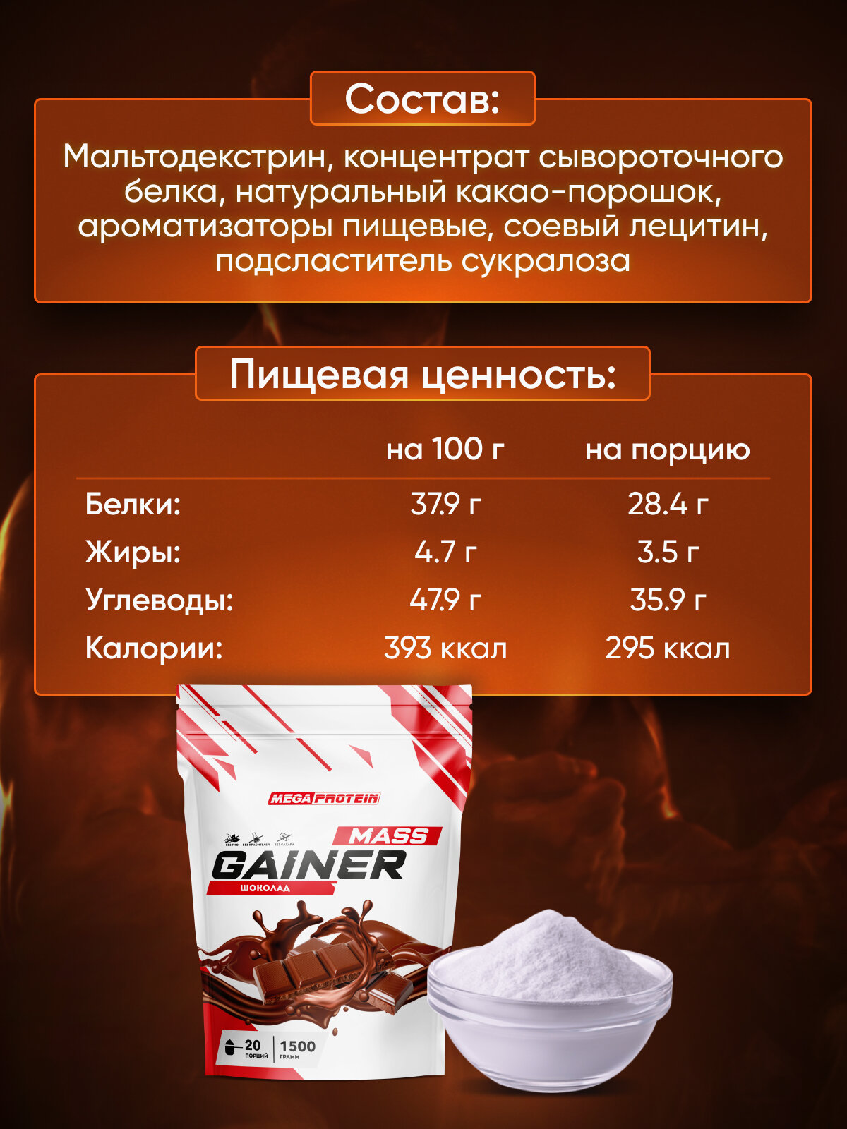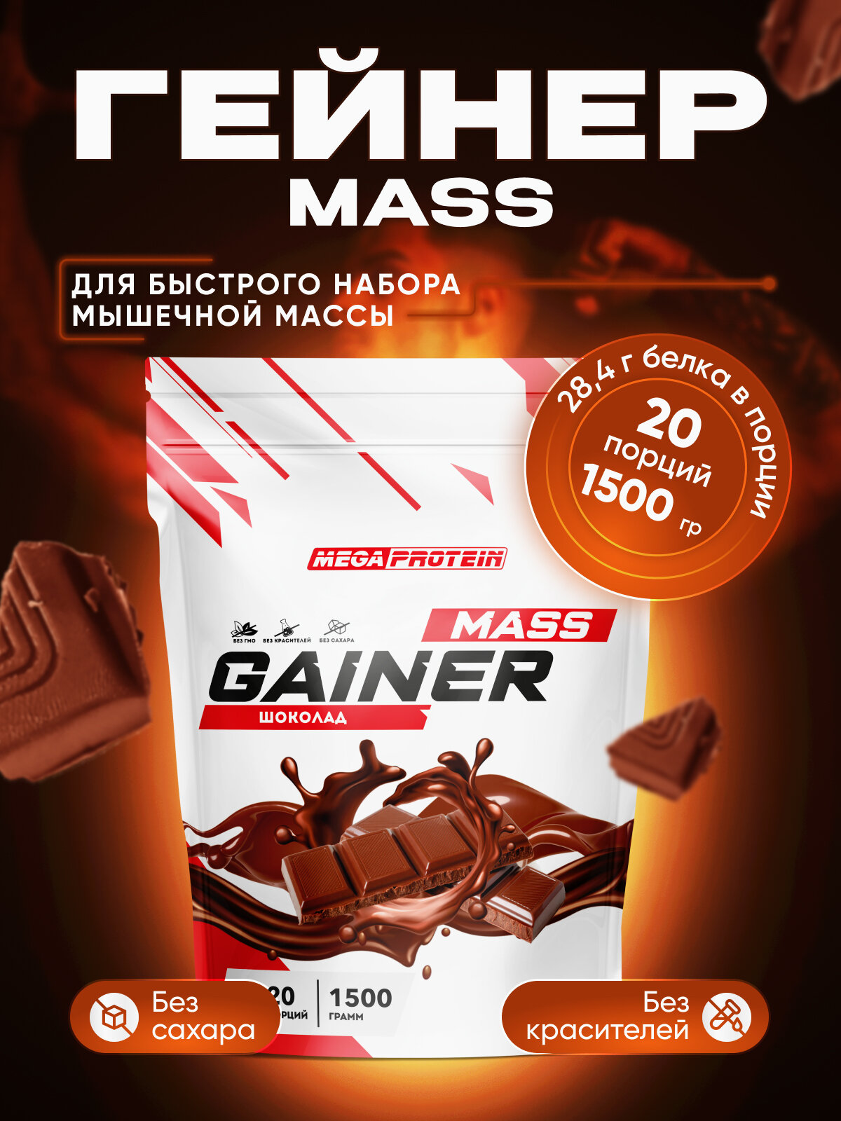 Гейнер для набора массы / Высокобелковый гейнер Mass Gainer Megaprotein, Шоколад / 1500 гр, 20 порций