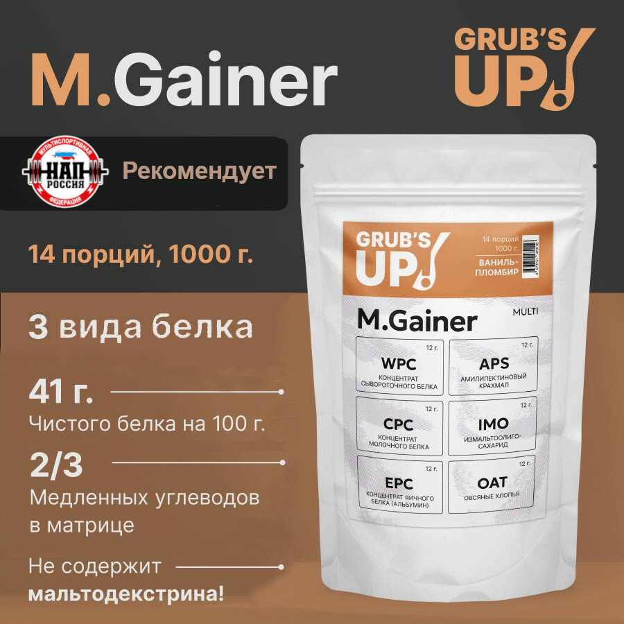 Купить Белково-углеводный коктейль (гейнер) Grub's up! M.Gainer ваниль-пломбир 1кг