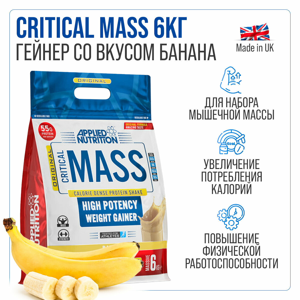 Купить Гейнер Applied Nutrition Critical Mass Original 6 кг (Банан)