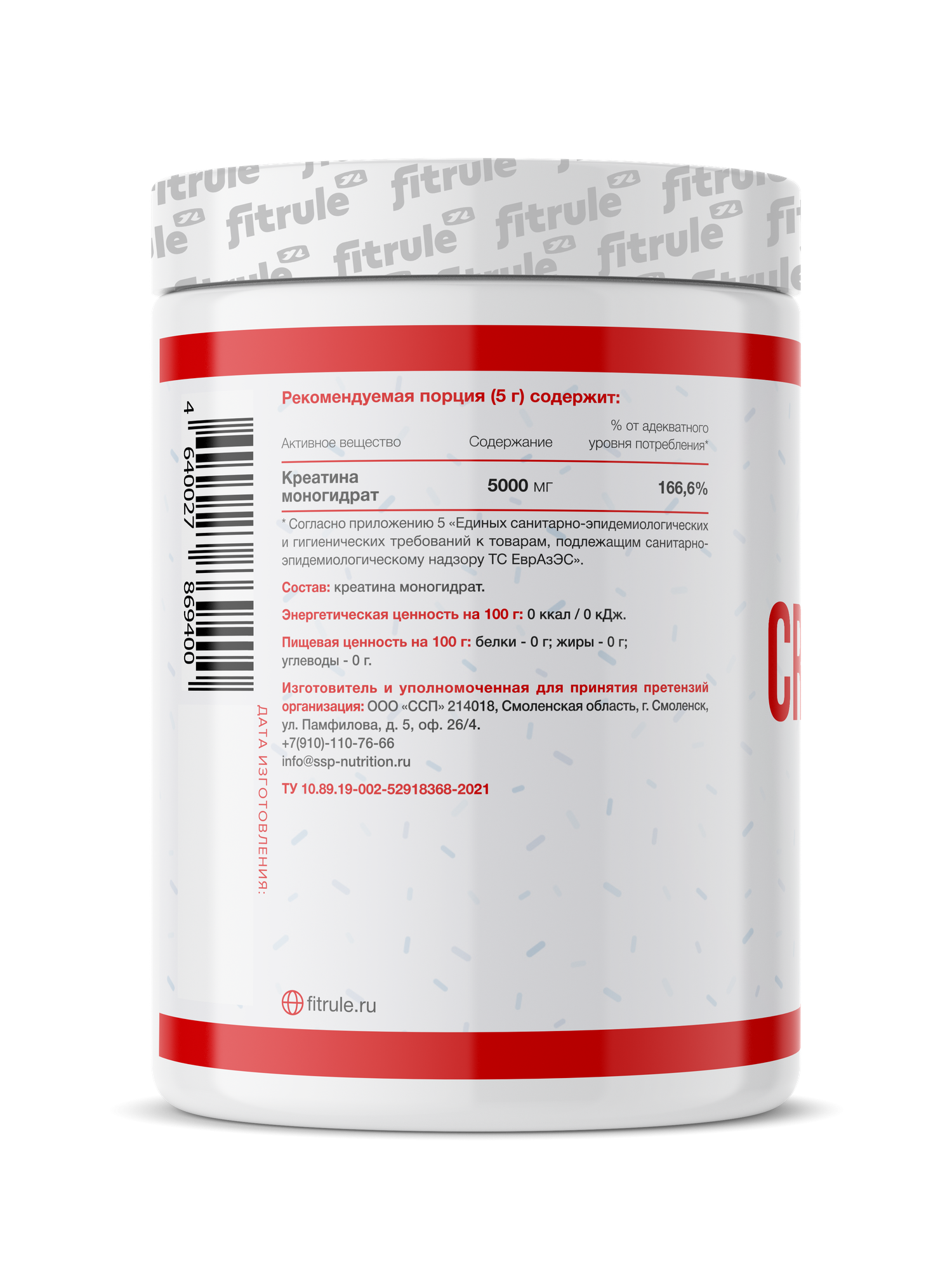 3УПАКОВКИ! Fitrule Creatine Креатин моногидрат порошок спортивное питание 100г