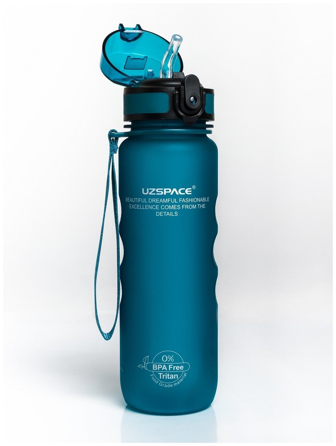 Бутылка для воды спортивная UZSPACE - из Тритана, с трубочкой, бирюзовая, 500 мл, с герметичной крышкой, BPA Free, для спорта и фитнеса, детская в школу