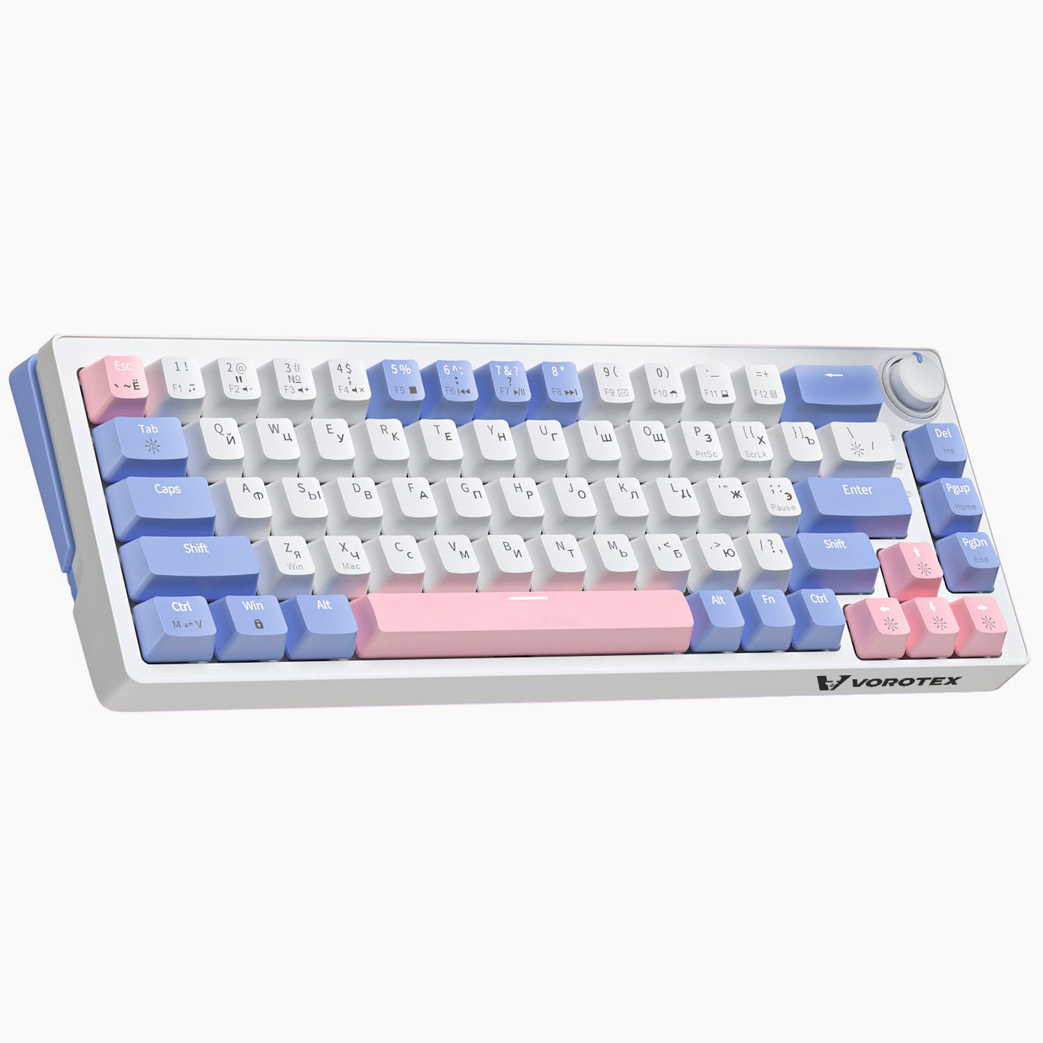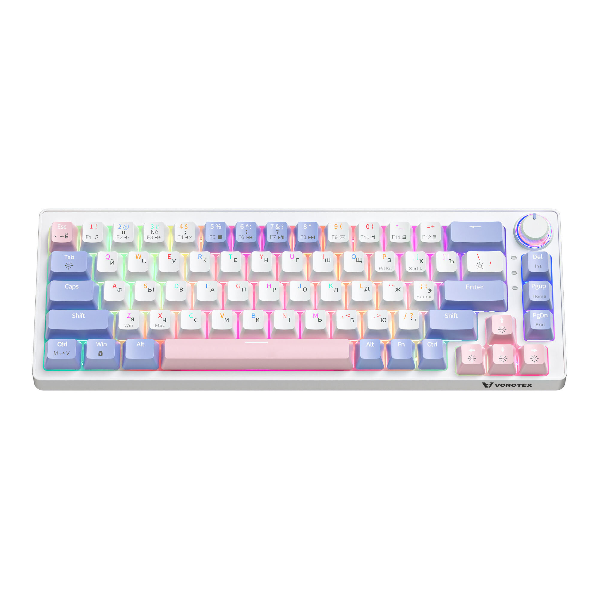 Клавиатура игровая проводная VOROTEX K680 Yellow Switch, русская раскладка (Фиолетовый, белый)