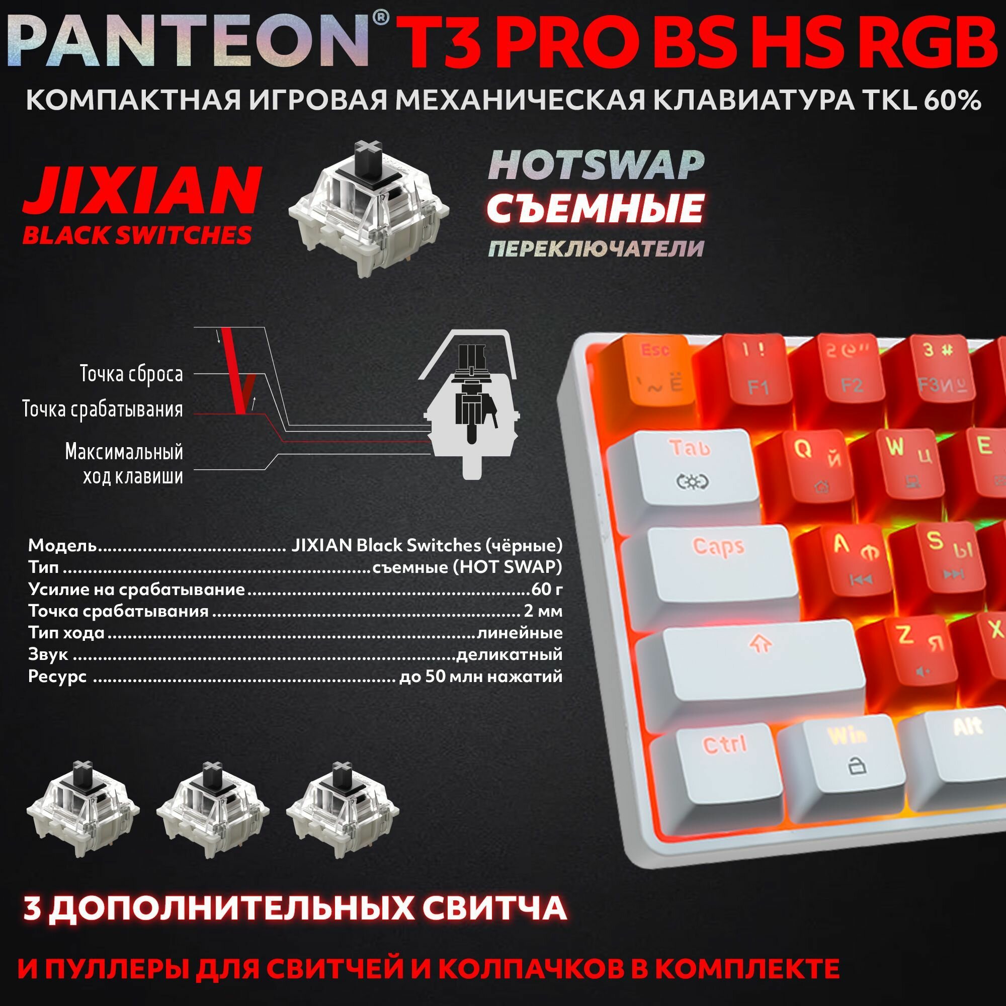 PANTEON T3 PRO BS HS RGB Red-White (45) Механическая клавиатура ( Jixian Black, 61 кл, HotSwap, USB)