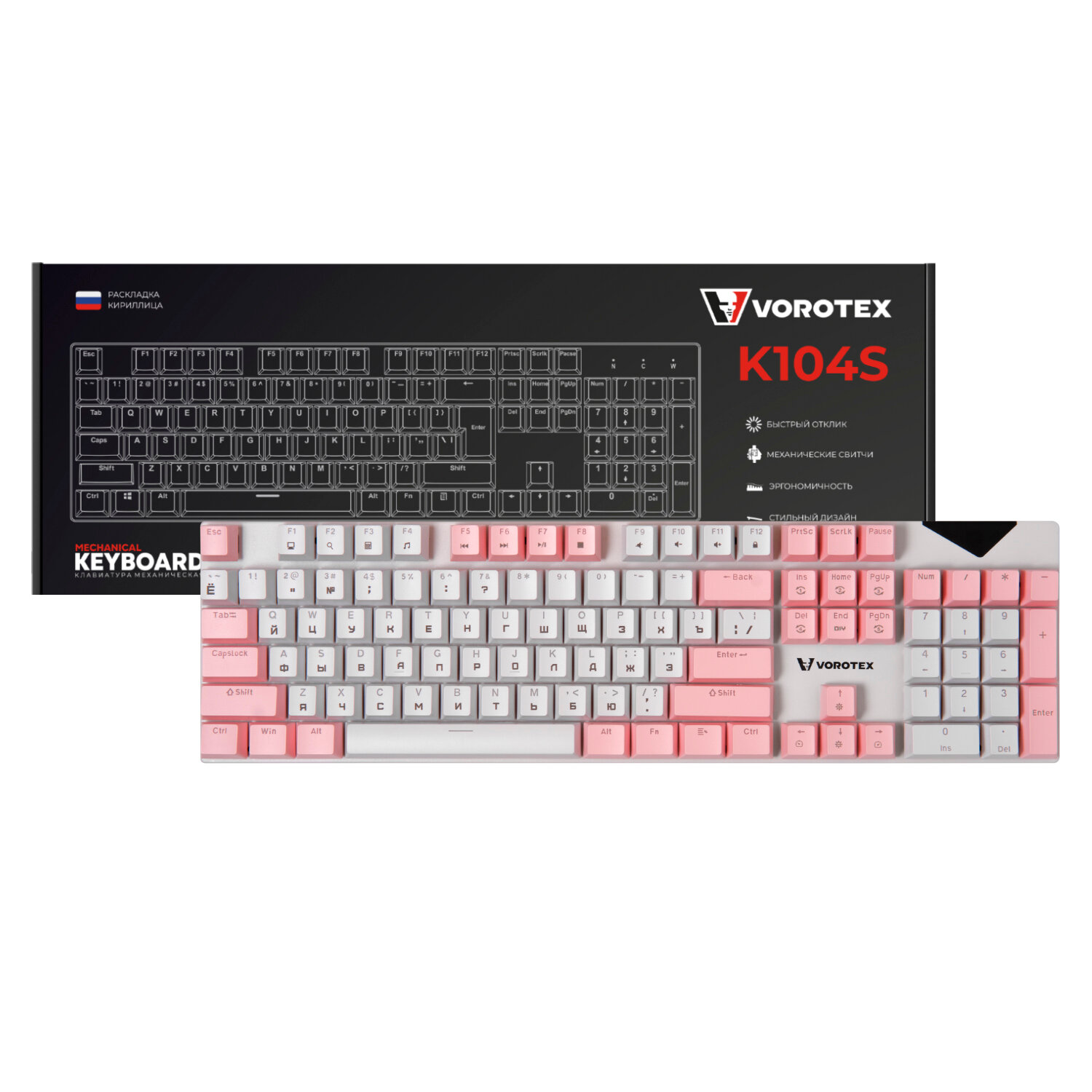 Клавиатура игровая проводная VOROTEX K104S Blue Switch, русская раскладка (Белый, розовый)