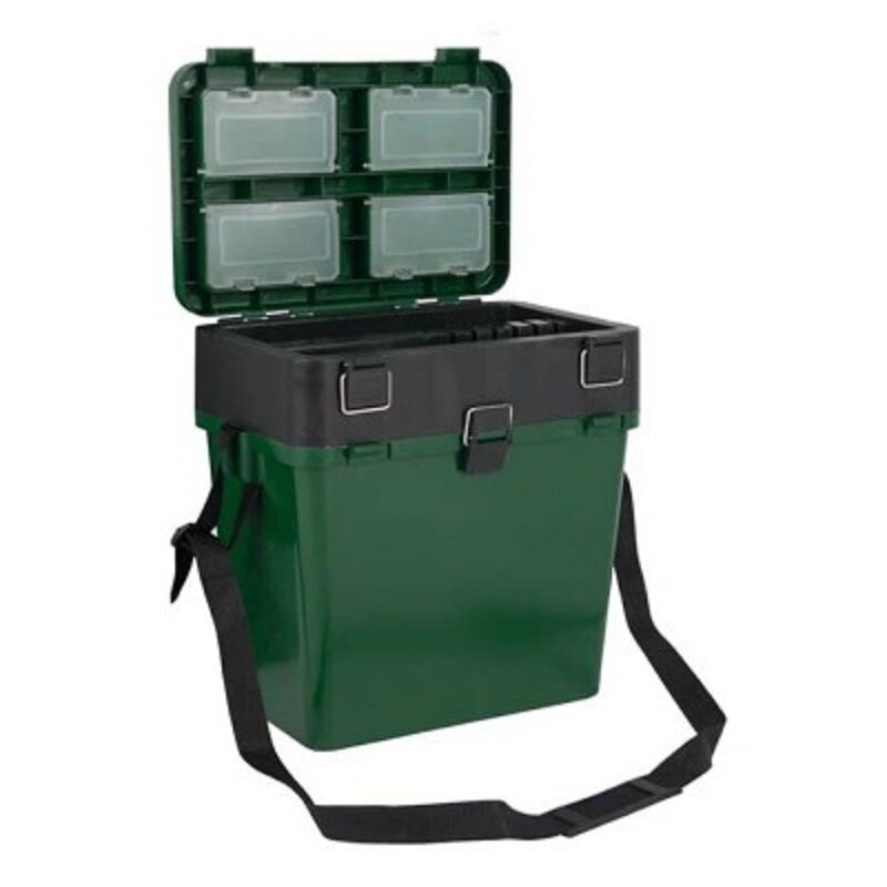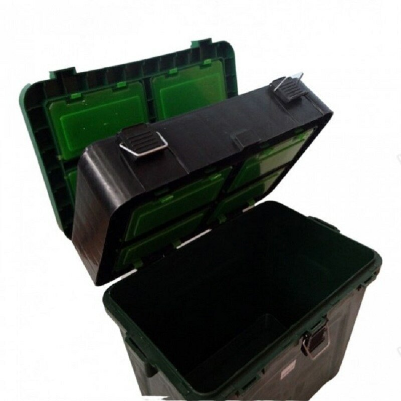 Ящик зимний, большой, 4+4 отделения для приманок, 380х360х240 мм, цвет зелёный
