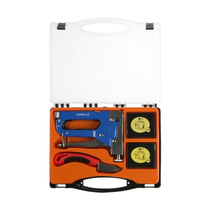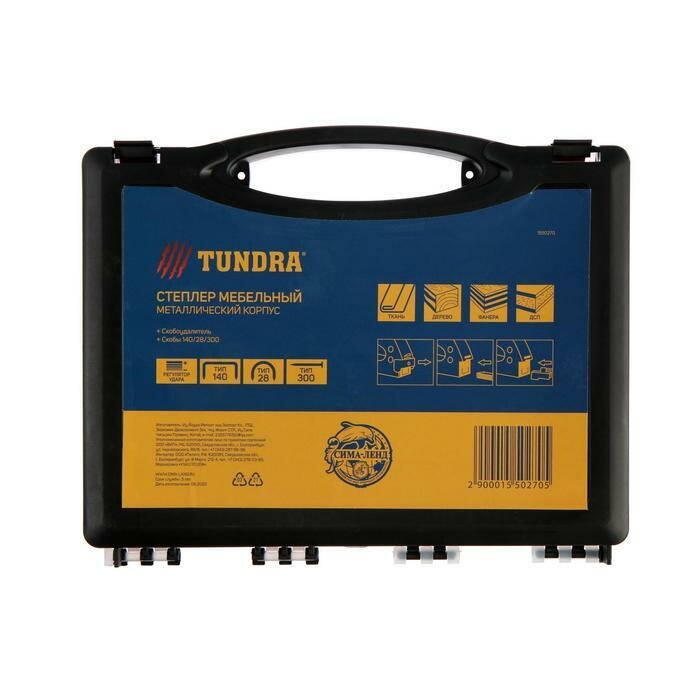 Степлер мебельный в кейсе TUNDRA, типы скоб 140/28/300, 4 - 14 мм скобоудалитель, скобы