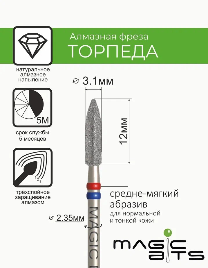 Magic Bits Фреза алмазная торпеда 3.1 мм с натуральным напылением средне-мягкого абразива интересное:
