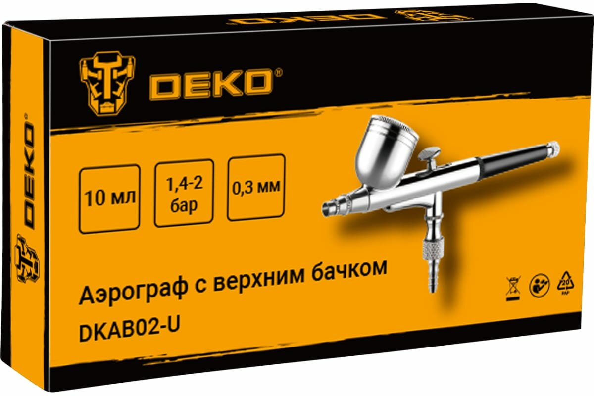Ниже Вы можете прочитать отзывы на Аэрограф c верхним бачком DEKO DKAB02-U, ознакомится с подробными характеристиками, посмотреть интересные обзоры и фотографии на Аэрограф c верхним бачком DEKO DKAB02-U.