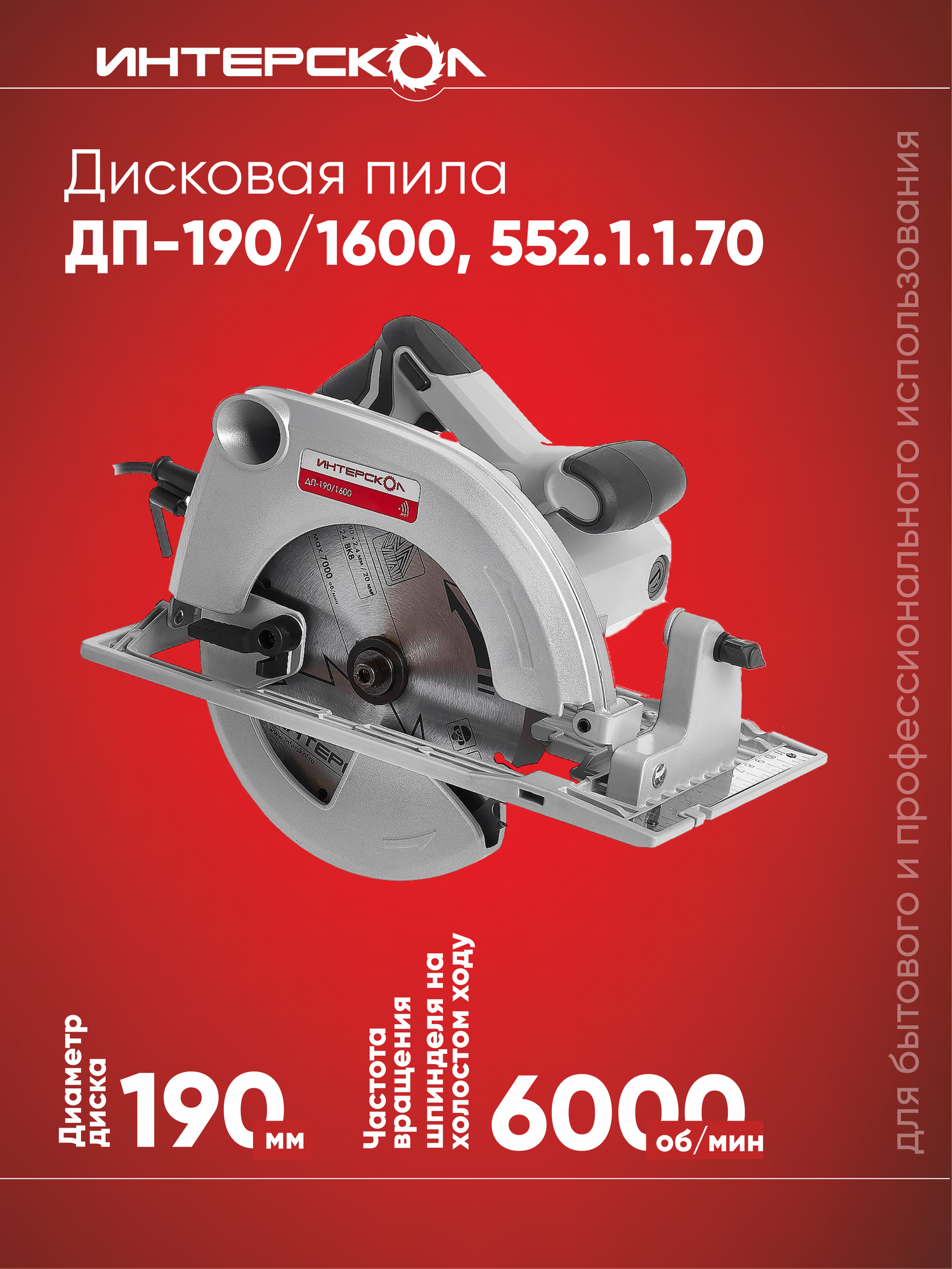 Пила дисковая ДП-190/1600 ИНТЕРСКОЛ 552.2.1.70 rs-552.2.1.70