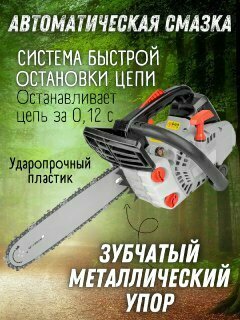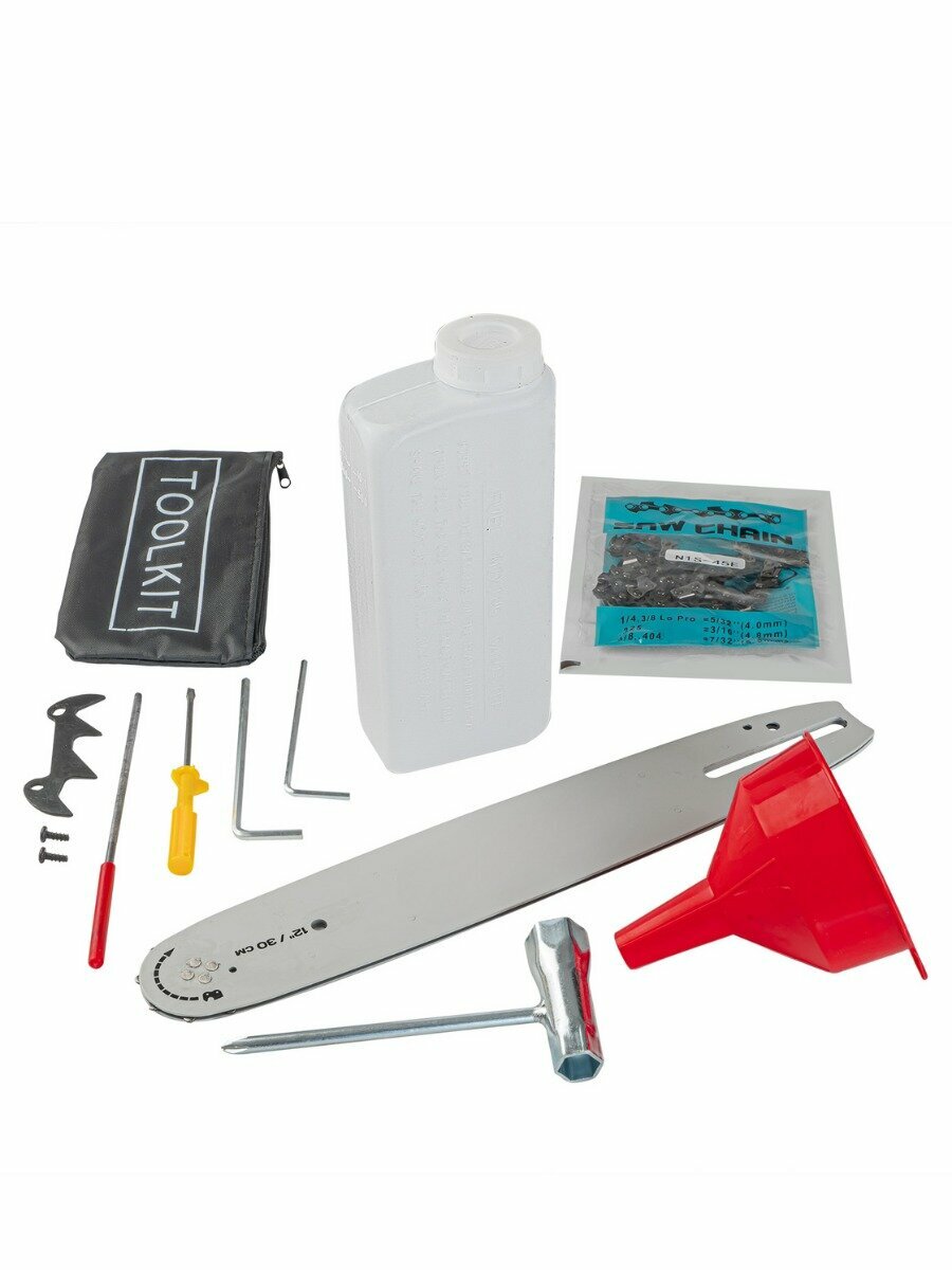 | Комплект поставки | Емкость для приготовления смеси, зубчатый упор, ключ шестигранный Г-образный - 2 шт., ключ свечной, напильник, отвертка, цепь, шина, защитный кожух шины, сумка для инструмента. |