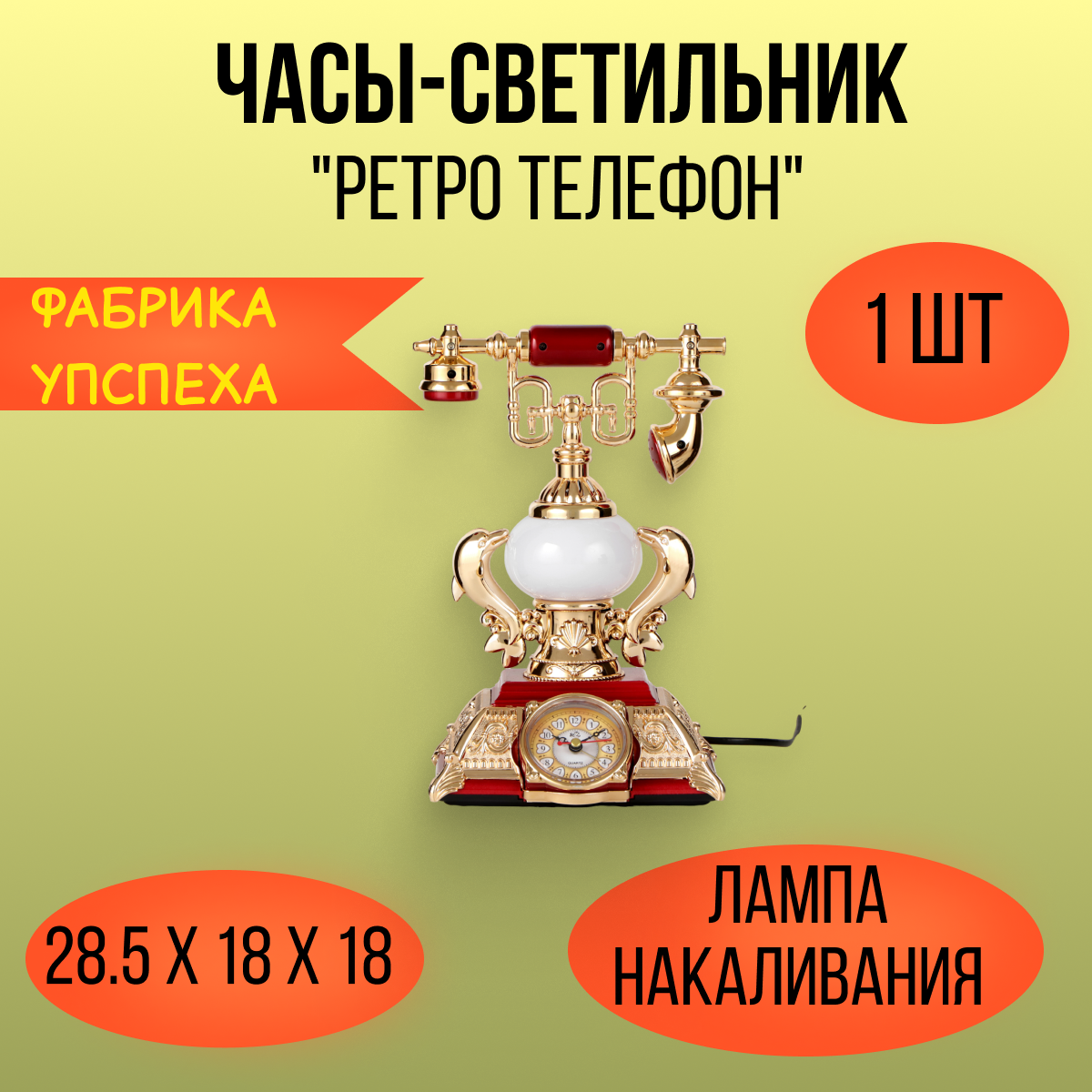 | Плюсы: | Красивый и функциональный сувенир- ретро телефон. Купила для оформления трюмо в зоне спальни. Смотрится очень нарядно, бонусы- часы и ночник. Очень довольна, но нужен был белый цвет, но его в наличии не было, пришлось купить такой |