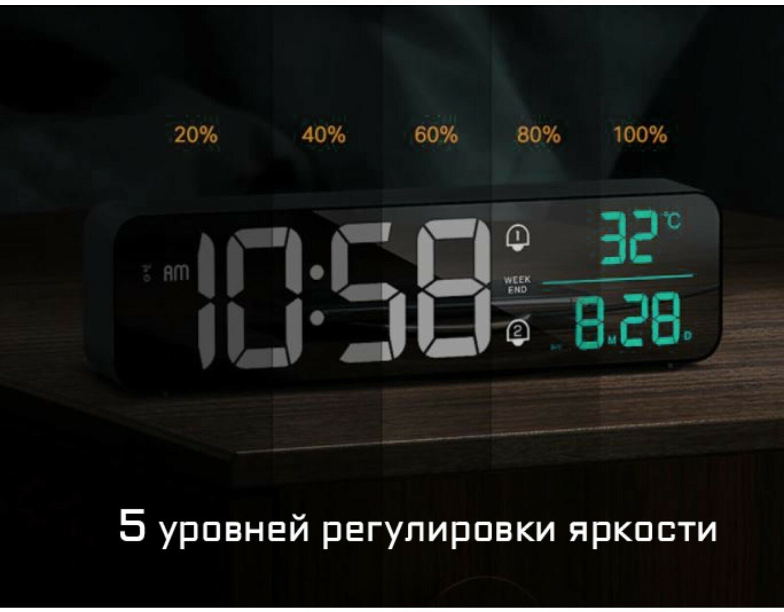 Часы электронные настольные, настенные: будильник, календарь, термометр 3.5 х 7 х 26.5 см 7352032
