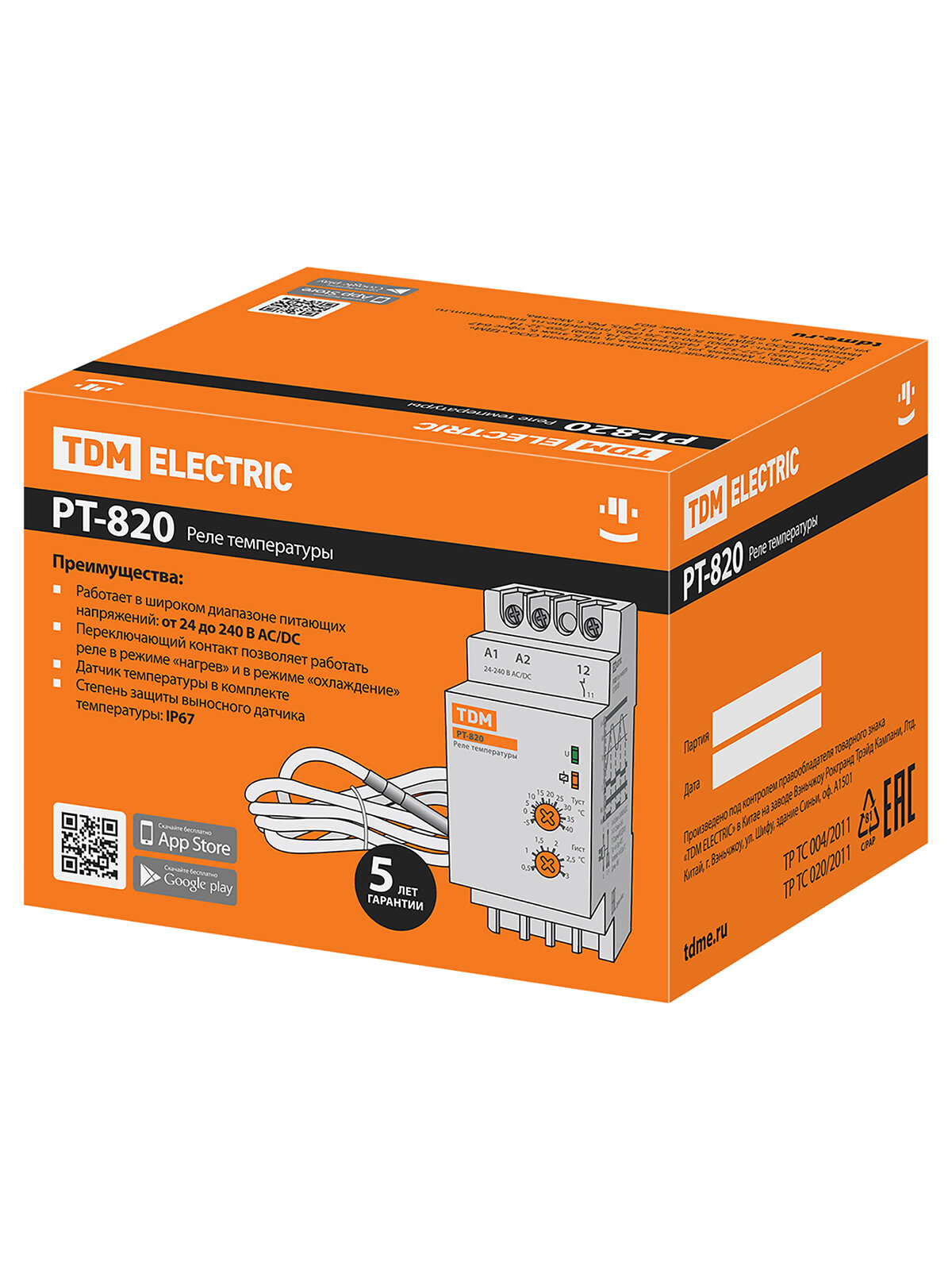 Реле температуры РТ-820 (-5+40С, 24-240В АС/DC, с датч. IP67) TDM SQ1508-0001 (1 шт.) интересное: